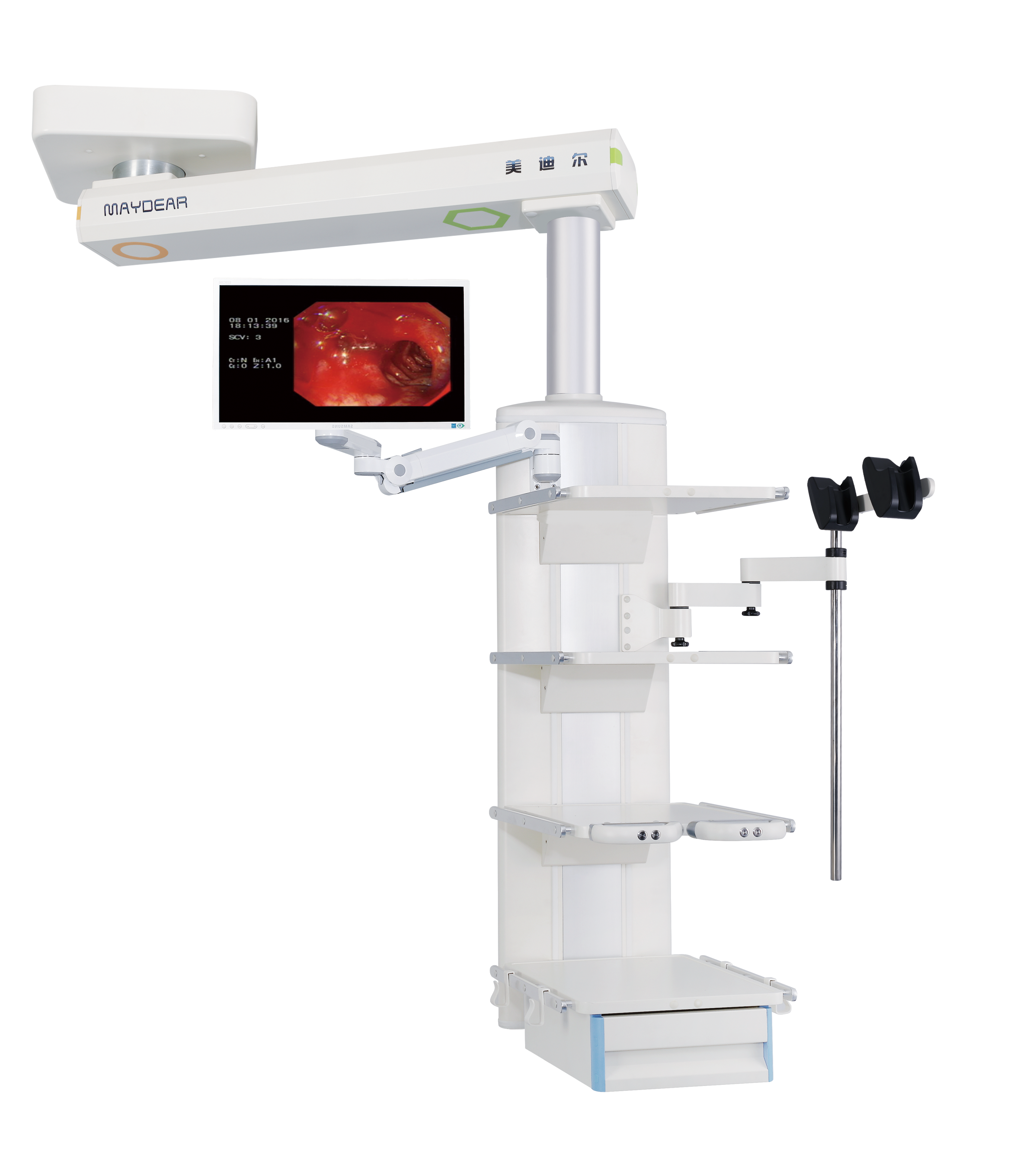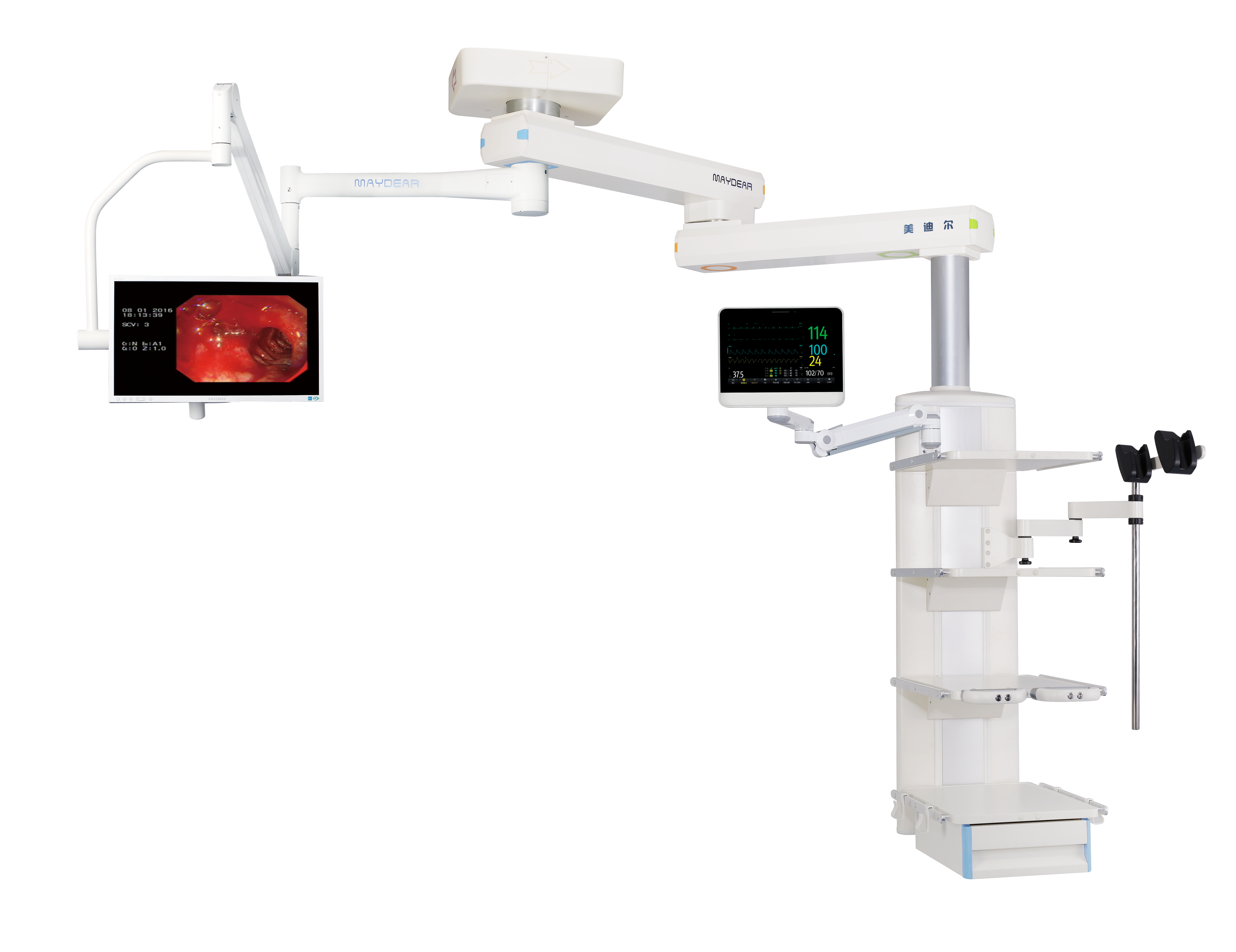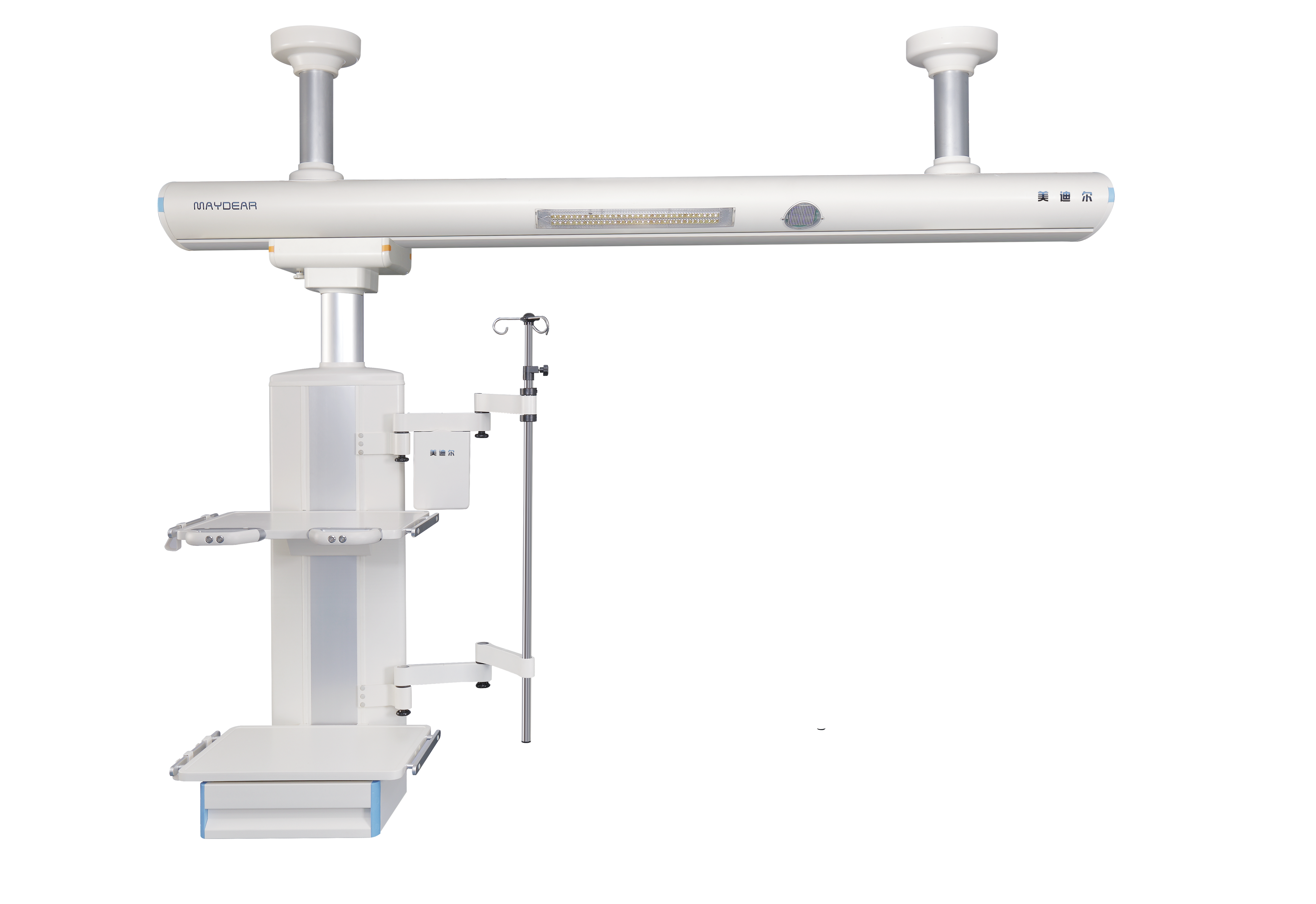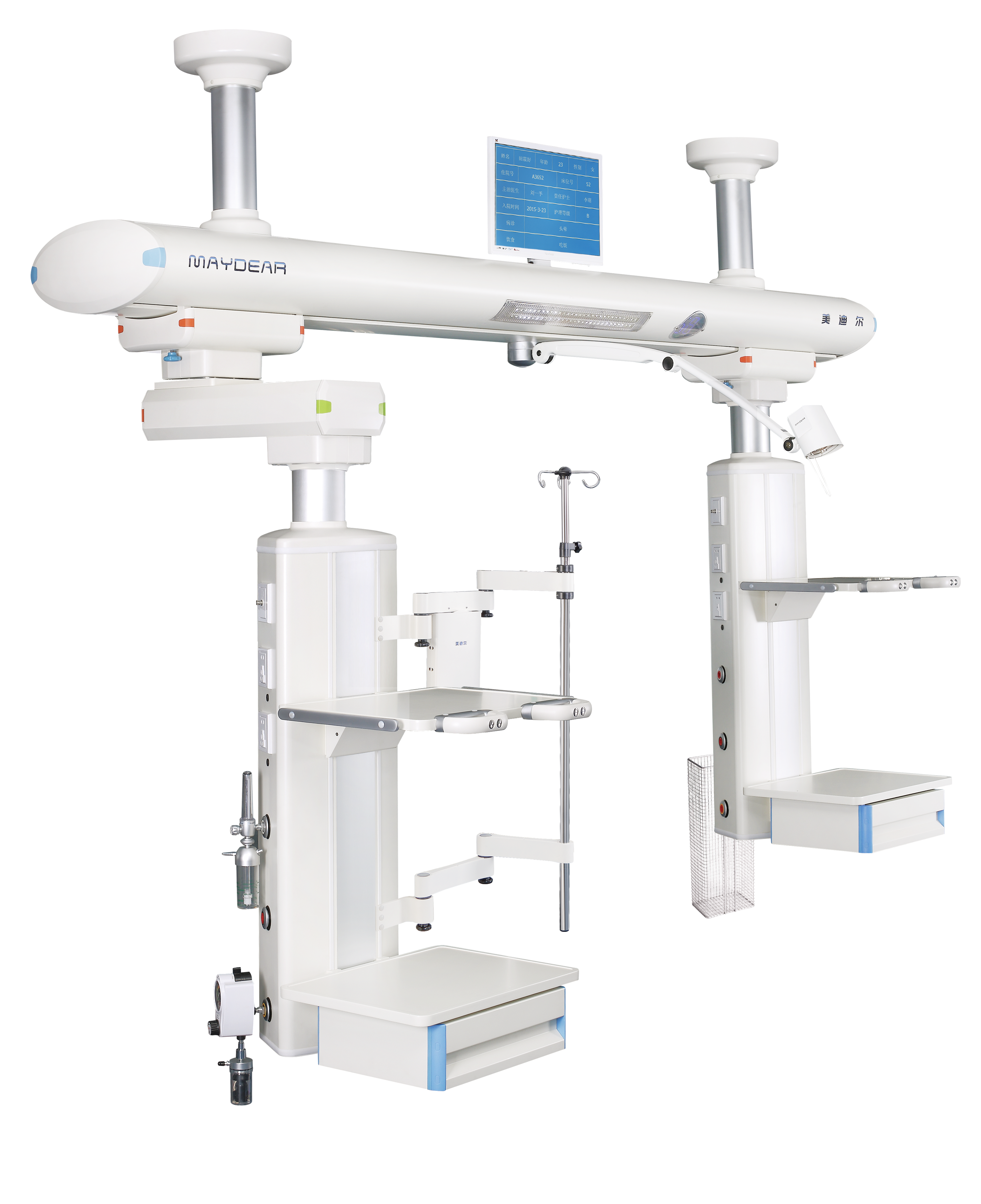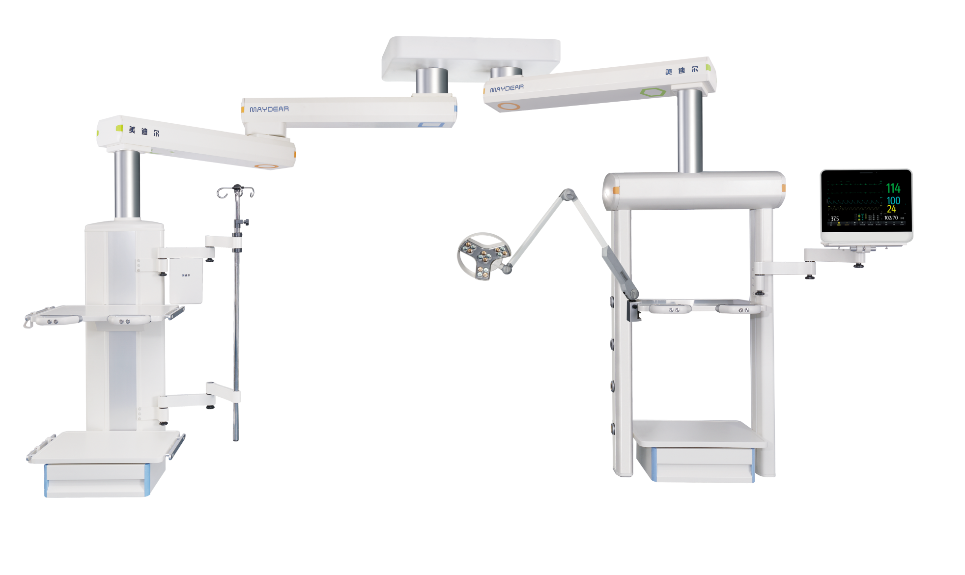 ICU 干濕分離旋臂吊橋 適用于醫院ICU病房,是現代重癥監護病房必備的醫療搶救輔助設備,主要由橋架,干段和濕段組成。其特點在于合理的干濕分離結構,濕段配置升降靈活的輸液架和輸液泵架。干濕段配置有可升降調節的醫療監護儀器平臺,在干濕段上分別將氧氣,空氣,吸引,強弱電,網絡輸入終端配置在醫護人員抬手可及的塔體上。濕段采用懸臂結構,提高了治療空間,移動旋轉部分采用氣控制動防飄移,桁架中央配置一款環保,節能的LED照明治療。為臨床治療提供了照明解決方案,另外還可根據您的要求選配通信傳呼,監控,可視電話